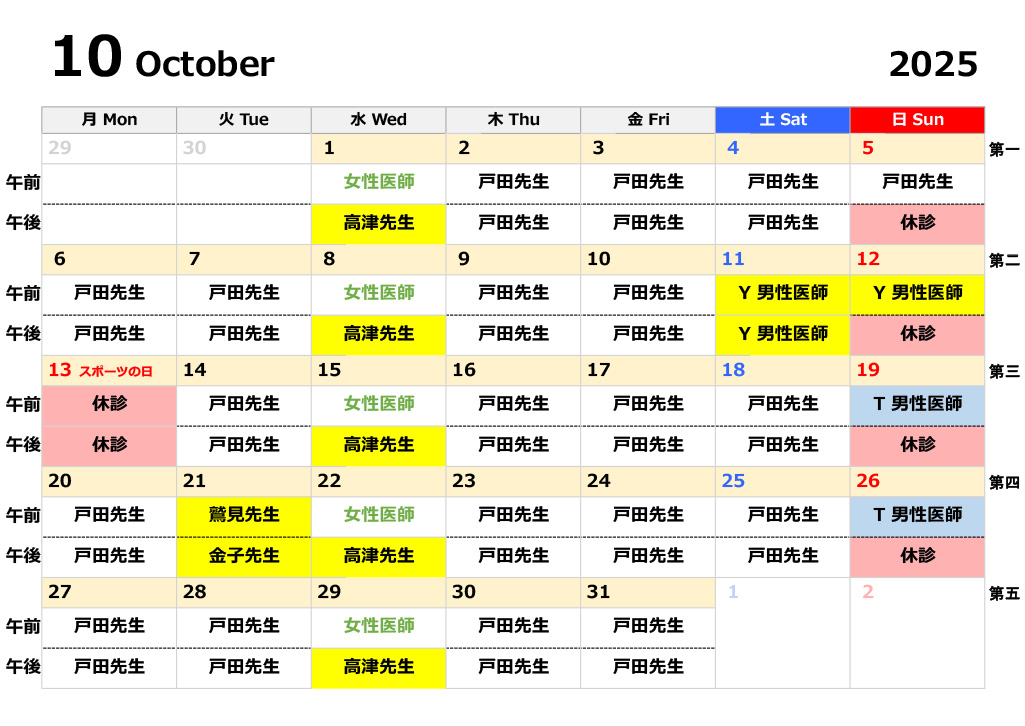 皮膚科は、月・火・水・木・土曜日に、女性医師による診察もおこなっていますので、小さなお子様や女性医師に診察して欲しい方も安心です!