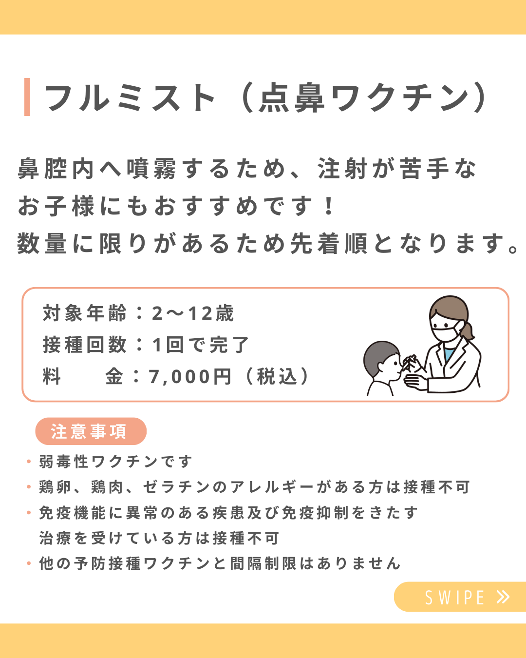 鼻腔内へ噴霧するため、注射が苦手なお子さまにもおすすめです!