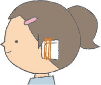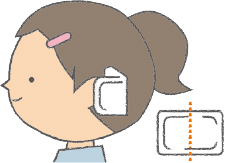 ❶ 貼るタイプの小さいカイロを2つに折り、耳を包み込むように貼りつける