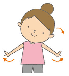 起床時と就寝時、またはふろ上がりなどに、1日2回行うのがお勧め 肩や腕に痛みのある人は、同じ側の手でひっぱってもいい