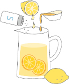 ❷ レモン汁の量は、好みに合わせて調整する。お勧めの分量は、2ℓの水にレモン1個を搾って作ったもの