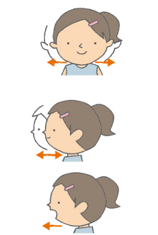 ❷ 下あごを前に突き出し、後ろに引く動作を5回行う